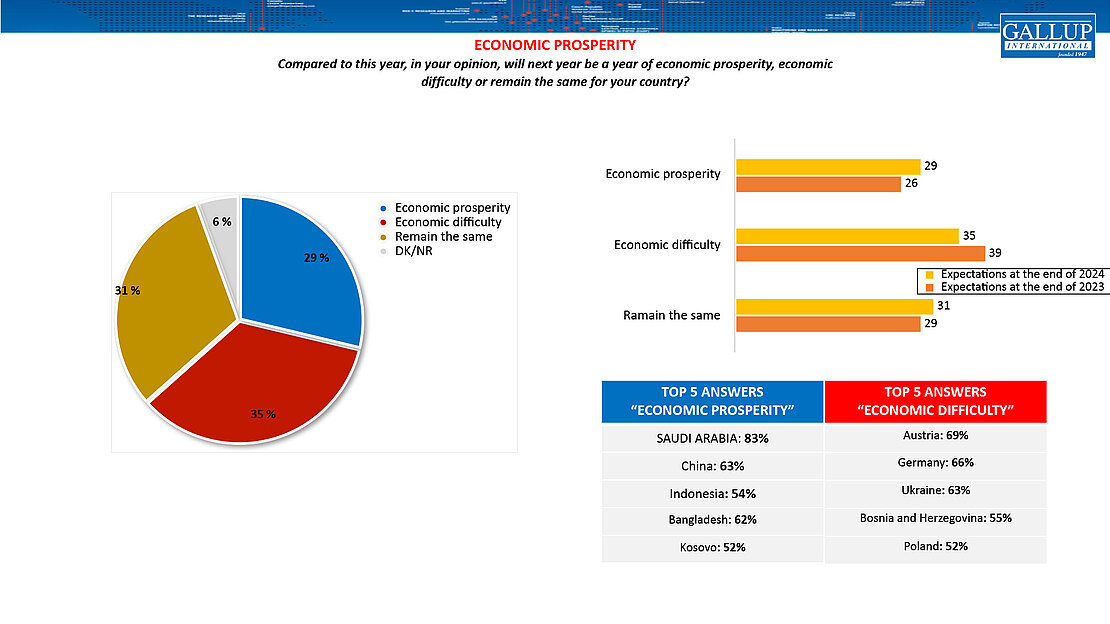 Наприкінці кожного року глобальна соціологічна мережа Gallup проводить масштабне опитування громадян 37 країн світу, щоб з’ясувати, які суспільні настрої панують на планеті. Глибоких тем, звісно, ніхто при цьому не торкається, адже порівняти між собою вкрай різноманітні приводи для стурбованості було б просто неможливо.