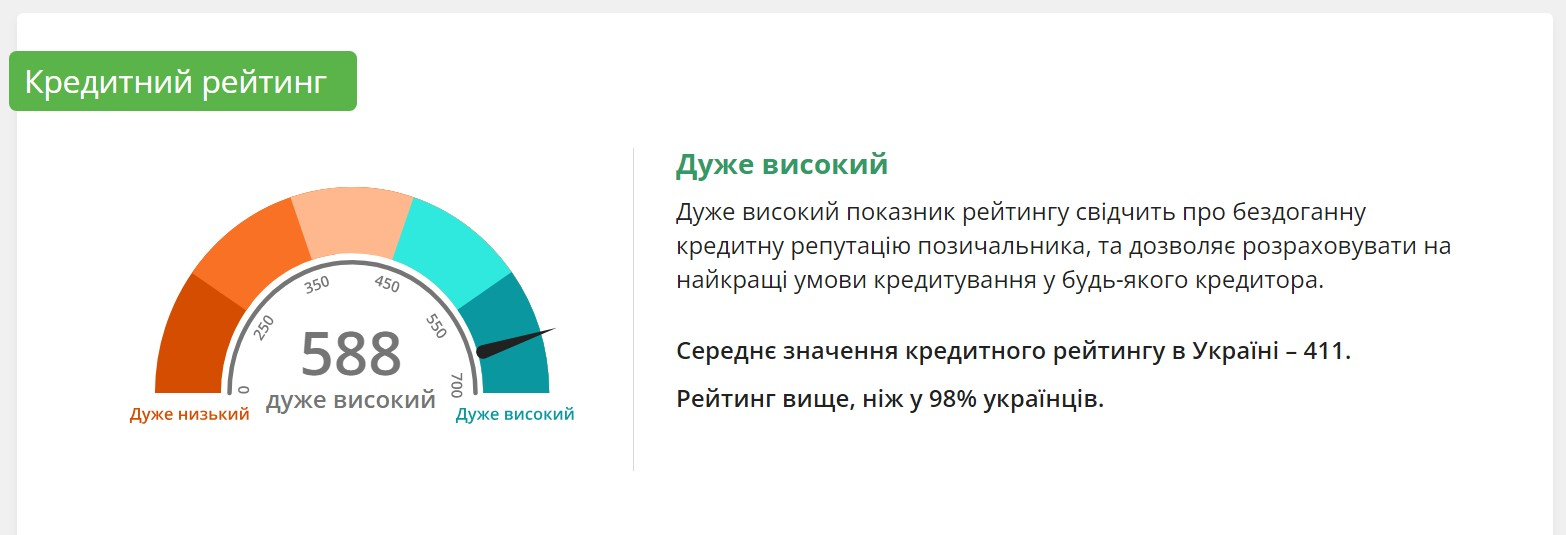 Деякі українські бюро, наприклад «Українське бюро кредитних історій» або УБКІ, власноруч розраховуються кредитний рейтинг позичальника на основі даних, що містяться в його історії. Ця послуга не є безкоштовною, але вона дає швидко та наочно зрозуміти, що на практиці означає зібрана про тебе історія кредитування.