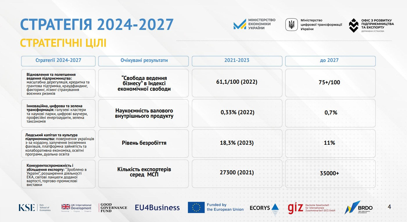 Менше з тим, саме на подоланні усіх перелічених труднощів здебільшого й зосереджена урядова стратегія. Вона розділена на 4 окремі мега-цілі, кожна з яких має кілька операційних. Задача номер один – відновлення та полегшення процесу ведення бізнесу.