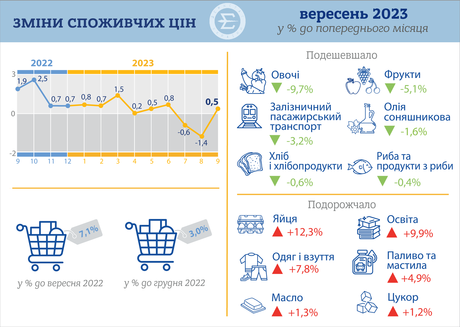 9 жовтня Держстат відзвітував про черговий інфляційний рекорд: темпи зростання споживчих цін у вересні уповільнилися до 7,1%. Нижчим показник востаннє був за підсумками IV кварталу 2020 року.