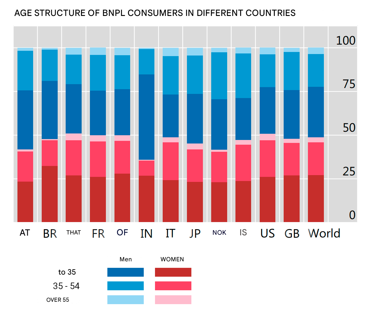 At the same time, installment purchases are most popular among young people. More than half of BNPL users are people under 35. This is the largest share among all age groups. Now remember another figure from the first part of the article – in the United States, 42% of installment payments are made using credit funds. And you will understand why scientists are so concerned about installment payments.