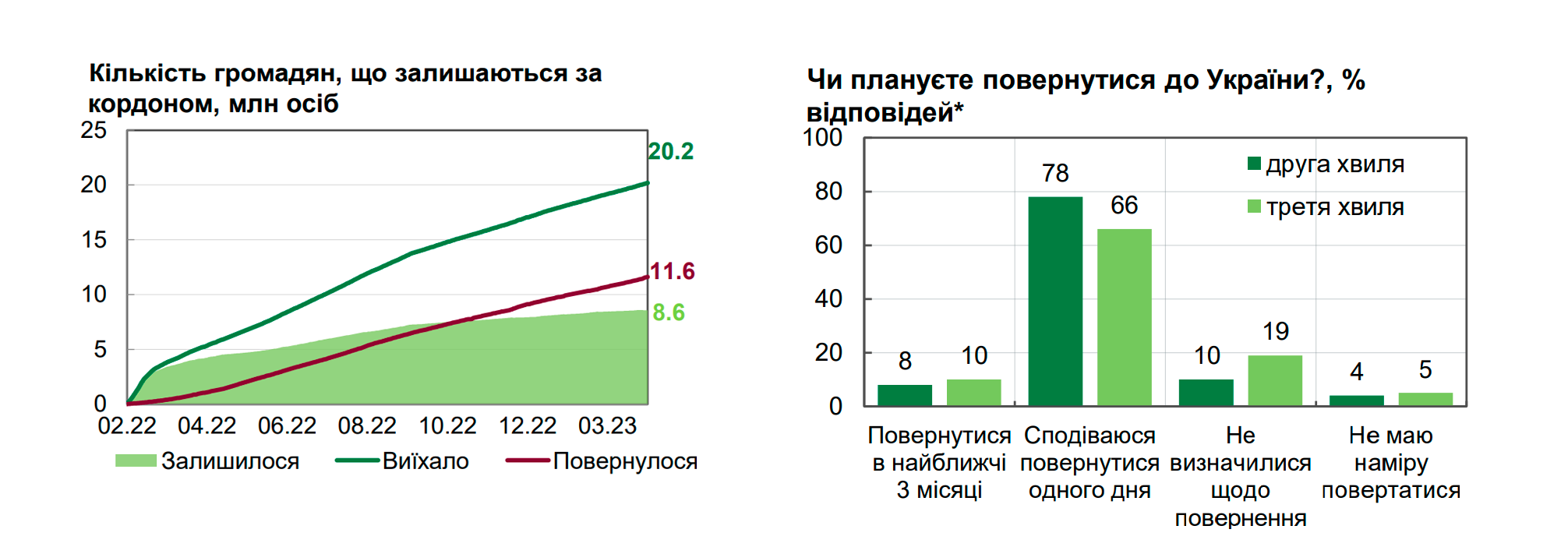 Лише 10% опитаних українців однозначно заявили про намір повернутися до України впродовж трьох місяців.
