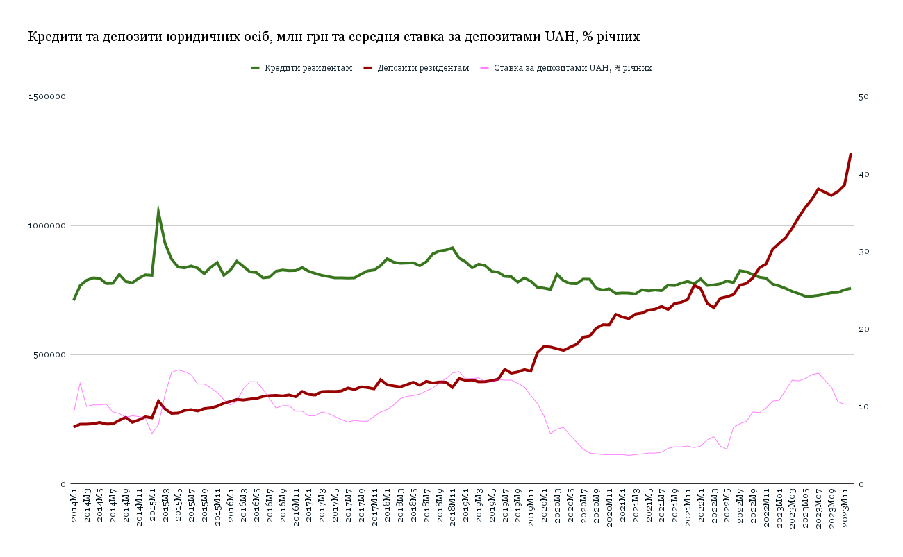 В июне 2023 года на банковском рынке Украины произошло выдающееся событие. Впервые за многие годы объем депозитов юридических лиц превысил кредитный портфель корпоративного сектора.