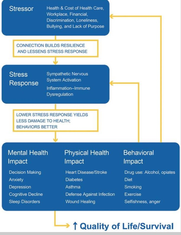 Графическое резюме того, как поощрение положительных социальных связей может повлиять на реакцию на стресс
