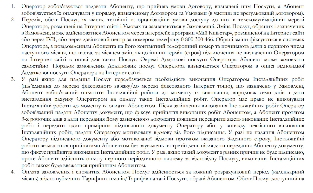 Некоторые типы публичных договоров мы уже рассмотрели выше. В частности, документы, которые разрабатывают и устанавливают интернет-магазины. Но публичные оферты встречаются везде, где речь идет о массовом обслуживании. В розничной торговле, перевозках, гостиничном бизнесе, предоставлении платных услуг связи и т.д. То есть повсюду, где невозможно или очень сложно организовать заключение реального договора между двумя сторонами. Вот, например, выдержка из публичного договора, согласно которому обслуживаются абоненты оператора Киевстар.