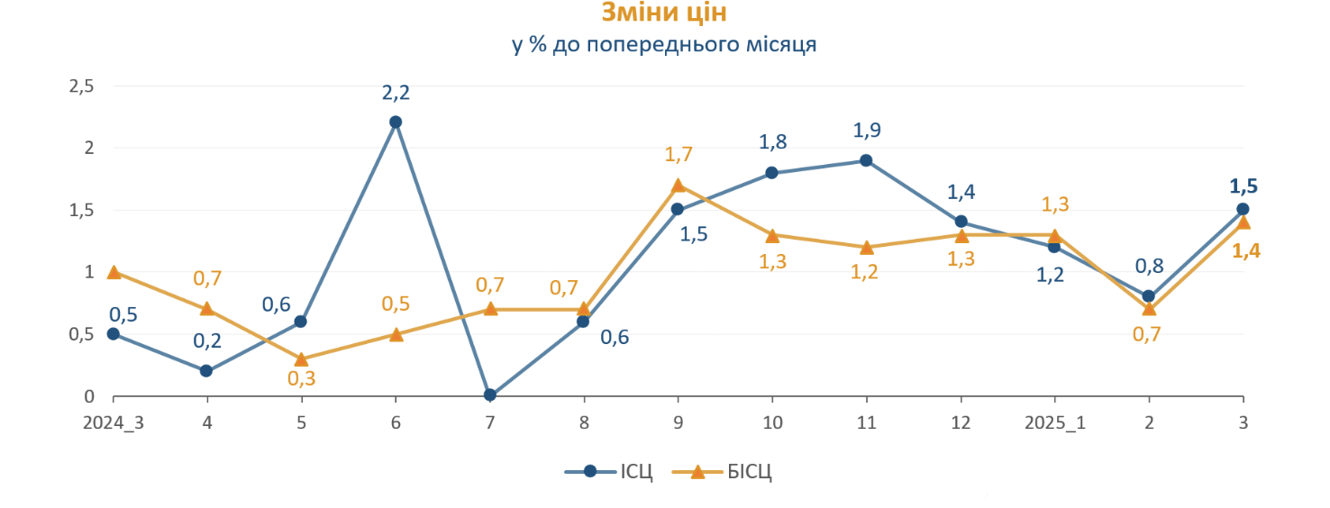 Минулого тижня Держстат зафіксував в Україні новий інфляційний сплеск. За його підрахунками, у березні 2025 року індекс роздрібних цін зріс на 1,5% по відношенню до лютого та на 3,5% з початку року. А в річному вимірі зафіксовані 14,6% після 13,4% в лютому, тож бачимо пришвидшену зміну цінників.
